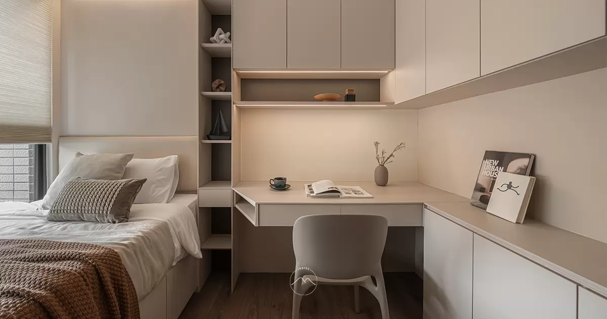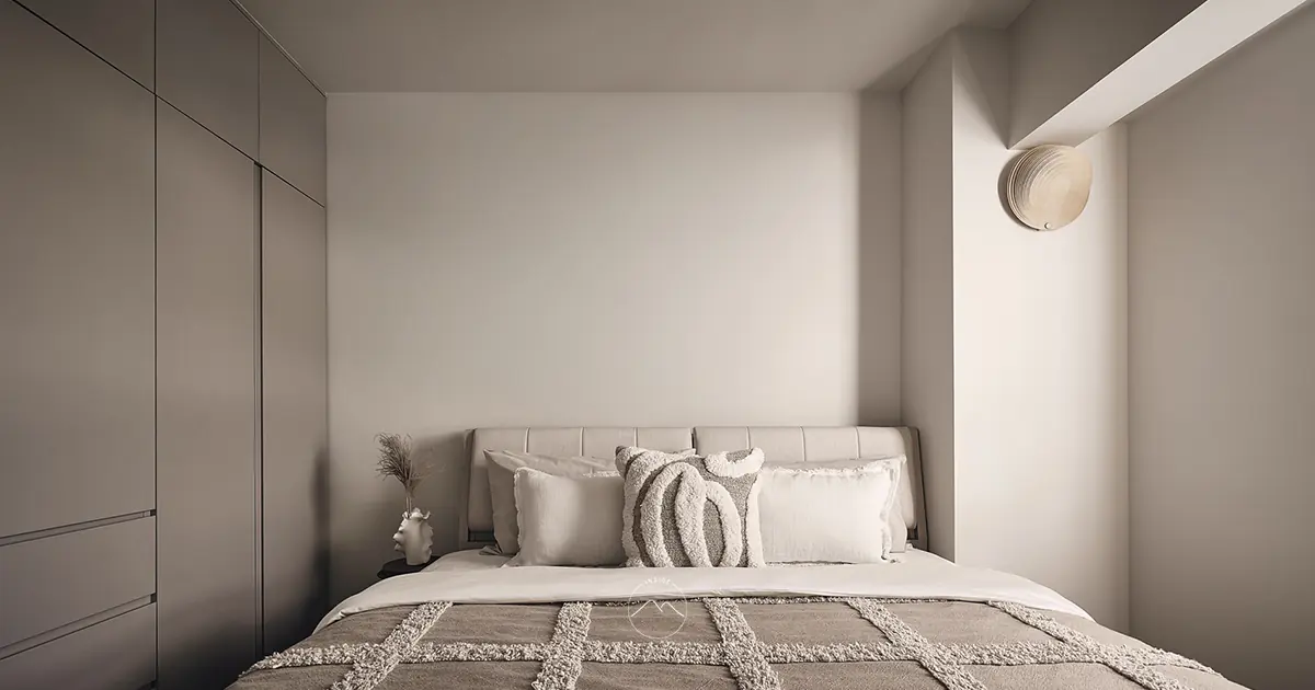 「米色客廳映照出寧靜日常;轉身,淺藍臥房帶來溫柔夢境。」